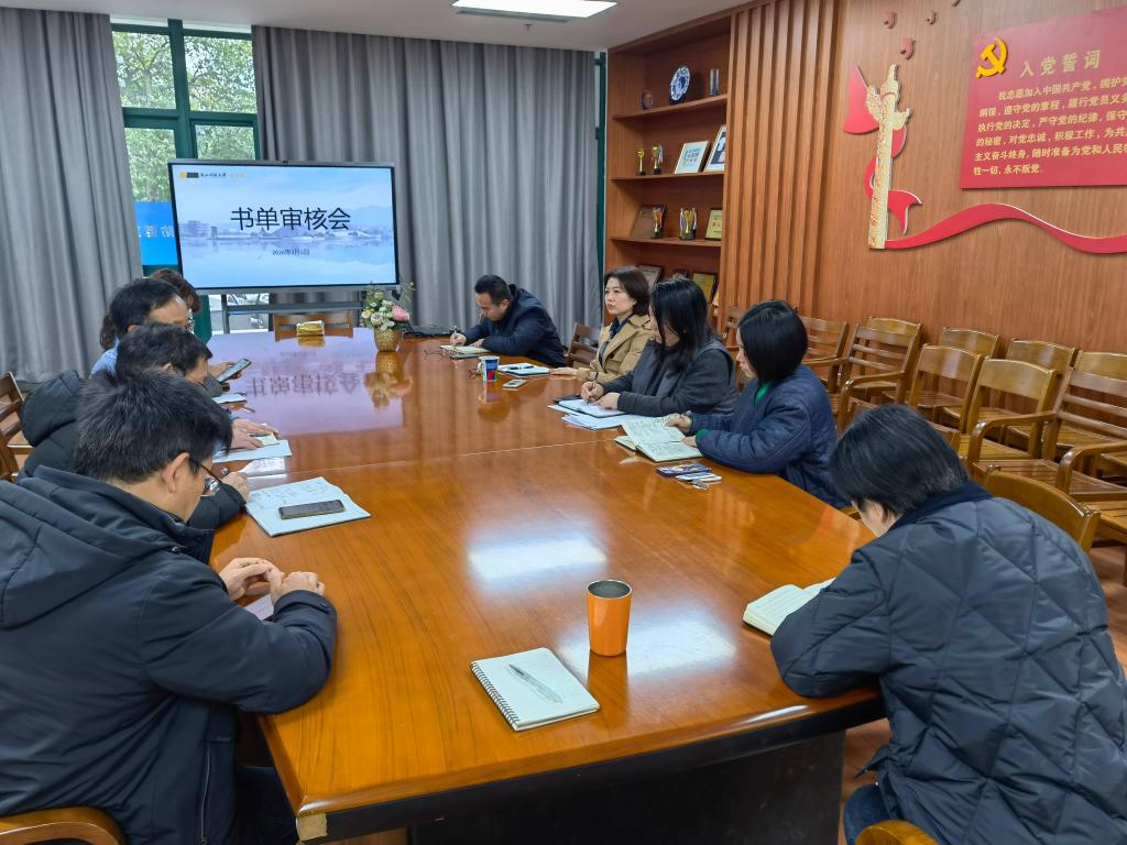 2026年3月5日上午,图书馆于105会议室召开2025年捐赠书单审核会暨2026年图书采访工作讨论会。馆领导班子全体成员及图书采访审核小组成员参会,副馆长钟琴主持会议。