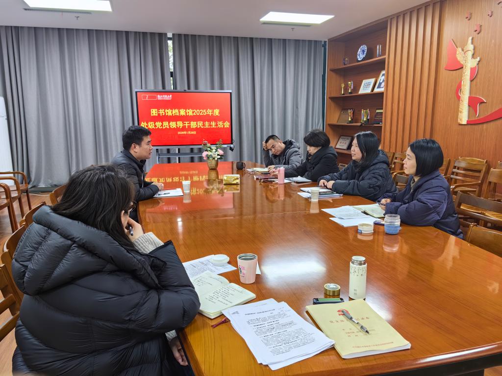 2026年1月28日,图书馆档案馆直支先后召开2025年度党风廉政建设分析会、处级党员领导干部民主生活会。校党委组织部干事程勇杰到会指导。直支书记王静主持会议。两馆党政班子全体成员及内设机构负责人参加了党风廉政建设分析会。两馆党政班子成员参加了处级党员领导干部民主生活会。